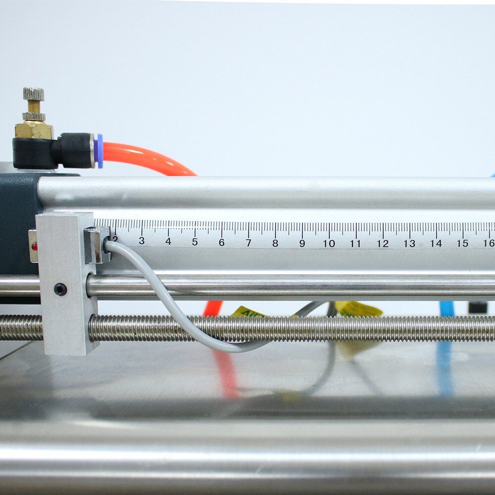 This kind of Bottle Filling Machine is semi-auto piston type. The liquid is sucked and pumped through a piston driven by a cylinder and a three-way rotation valve controls the flow direction. The cylinder stroke is controlled by a signal valve and the filling amount is adjusted by a handwheel.